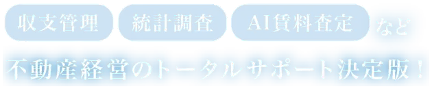 収支管理・統計調査・AI賃料査定など不動産経営のトータルサポート決定版! 収支管理・統計調査・AI賃料査定など不動産経営のトータルサポート決定版!
